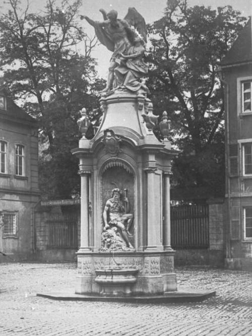 Der Gott der Zeit und das Buch der GeschichteDer "Chronosbrunnen" in der Hofstrasse an dem kleinen Platz vor dem Bechtolsheimer Hof (von Antonio Petrini erbautes ehemaliges Stadtpalais der Freiherren von Bechtolsheim) ist ein Werk des frühen Klassizismus um 1770 herum, das von Fürstbischof Adam Friedrich v. Seinsheim anstelle des alten Ziehbrunnens in Auftrag gegeben wurde. Als Motiv zur Errichtung des Brunnens lässt sich wohl eine angemessene Hinführung zur Residenz vermuten, wenn man sich dieser aus der alten Stadt heraus näherte.Der Aufbau dieses Brunnens ist in der Tat als 'klassisch' zu betrachten. Ein massiver Sockel aus fränkischem Muschelkalk mit an den Ecken angesetzten Pfeilern und einfacher Halbschale zur Strasse hin trägt einen eben klassizistisch gegliederten Säulenpavillon mit einer Nische zur Strassenseite hin. Darin sitzt im Rahmen einer sehr stilisierten Grotte die allegorische Figur des 'Moenus', welcher - dem Vierströmebrunnen im Juliusspital nicht unähnlich - aus einem Füllhorn heraus den Main in das Land hinein fliessen lässt. - 'Moenus' ist einfach das lateinische Wort für den Main; sein Gebrauch im Zusammenhang mit der Figur kann auch bedeuten, dass man sich hier den Flussgott bzw. Vater Main vorstellen soll, der dem reichen und fruchtbaren Land als Lebensader dient, worauf natürlich auch die beigefügten Attribute (z.B. Trauben) hinweisen. Letztlich aber kommt es immer auf das Gleiche raus, es ist der Main ...Am stark gegliederten Gebälk des Pavillons ist das Wappen der Stadt mit den Farben Gold und Rot angebracht. Die Dachhaube verwandelt sich jedoch wiederum in den Sockel für eine weitere, den Brunnen bekrönende Figurengruppe aus hellem Sandstein, welche 'Chronos', den griechischen Gott der Zeit, und 'Clio', die Muse der Geschichte zeigt. Manchmal ist das Verstehen ganz leicht, in dem Wort 'Chronos' begegnet uns z.B. der Chronometer oder auch die Chronologie. Hier ist es so, dass der geflügelte 'Gott der Zeit' mit dem ausgestreckten Arm in Richtung der Residenz deutet und den Kopf der an seiner Seite knieenden Muse zugewendet, diese auffordert, die großartige Geschichte dieses einzigartigen Schlosses und seiner Erbauer für alle Zeit im Buch der Geschichte aufzuschreiben. Vielleicht befiehlt er sogar, denn die Muse 'Clio' scheint erschrocken vor der intensiven Präsenz des 'Chronos' ein wenig zurückzuweichen. - Die auf dem Säulengebälk platzierten, Girlanden geschmückten Amphoren frieren den Moment der Szene als Bild ganz klassizistisch ein. Der Brunnen trägt auch den Namen "Moenusbrunnen", je nachdem auf welche der Figuren man sich nun beziehen möchte. Die Chronosgruppe ist von Peter Wagner, dem Vater Martin von Wagners, aus einem einzigen Block gefertigt worden, welcher dem doch etliche Kilometer entfernten Abtswind entstammte. Der Transport des Blocks stellte damals v.a. aufgrund des Gewichts von ca. 7,5 Tonnen eine grosse logistische Herausforderung dar, für die ein Gespann mit 20 Pferden verwendet worden sein soll.Sowohl die Chronosgruppe, als auch der Moenus sind aufgrund der Witterungsschäden nicht mehr original; ein Problem, das sich in Würzburg grundsätzlich für Sandsteinplastiken stellt. Während Chronos und Clio 1890 in Marmor (das Sandstein-Original ist leider verschollen) kopiert und neu aufgestellt wurden, ist der Moenus bereits 1882 in einer neo-romantischen Auffassung jener Zeit und sich vom Original stark unterscheidend neu gestaltet worden. Hier hat sich das Original jedoch durch den damaligen Kunstsammler Freiherr von Heyl erhalten, in dessen Schloss in Hermsheim es sich an einer Wand der Remise noch heute befindet.Der 'Chronosbrunnen' ist schon ob seines Standortes und auch des Konzeptes wegen, das eher in die Höhe als in die Breite reicht, nicht einer der auffälligsten Brunnen Würzburgs, aber deswegen keineswegs weniger interessant oder betrachtenswert. - Schauen Sie hin auf Ihrer Erkundung durch die Altstadt Würzburgs.Der ‘Chronosbrunnen’ im Video des AltstadtrundgangesDie Station 2 des Altstadtrundganges führt gleich zu Beginn auf dem Weg in die Stadt hinein u.a. auch an dem klassizistisch gestalteten ‘Chronosbrunnen’ vorbei. Sehen Sie hier das entsprechende Kapitel aus dem Video des Rundganges, das Sie sich auf Mein-Wuerzburg.com in voller Länge auch auf der zuständigen Seite Altstadtrundgang anschauen können.