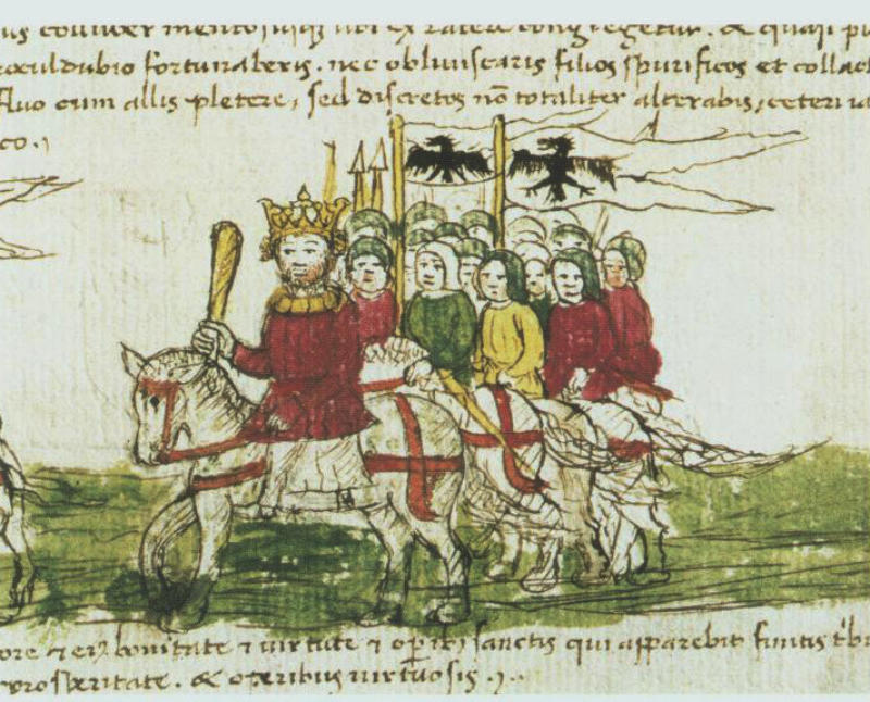 . Der feierliche und von der Bevölkerung umjubelte Hochzeitszug führte von der über die damals erst wenige Jahrzehnte alte steinerne Mainbrücke die Domstrasse hinauf bis zum Dom. Es war das stilbildende Gesellschaftsereignis des hohen Mittelalters schlechthin. Wenn fortan ein Autor des mittelhochdeutschen Romans oder ein Dichter, ein Sänger etc. Ereignisse von grosser Pracht und Herrlichkeit zu beschreiben hatte, so wurde der ausführliche Vergleich zur Würzburger Kaiserhochzeit herangezogen, denn nur dann konnte es sich auch tatsächlich um ein Ereignis von wahrer gesellschaftlicher und höfischer Bedeutung handeln.Im Grunde ist es ja so, dass jedes historische Ereignis einen bestimmten Einfluss auf die weitere Entwicklung nimmt oder eben auch bereits vergangene Geschehnisse mit einer Folgegeschichte bewertet. Manche dieser Ereignisse nehmen aber einen ganz herausragenden Platz ein, weil sie beispielsweise auf alles weitere einen prägenden Einfluss nehmen. So ist es letztlich mit auch mit Barbarossa und seiner Beziehung zu Würzburg gewesen. Weniger das Wirken der Person in der Stadt, welche als Reisekönig eigentlich nur ein regelmässiger Besucher war, sondern mehr die Nutzung des Schauplatzes Würzburg und natürlich in der Wechselwirkung dieser Allianz die Verleihung der 'Güldenen Freiheit' erzielten die historische Bedeutung. Das Würzburg der darauffolgenden Jahrhunderte wäre ohne dieses Erscheinen von Friedrich I., genannt Barbarossa, einfach nicht denkbar.Es verwundert etwas, dass das Andenken an diesen Kaiser in der Kunst Würzburgs relativ wenig Wiederhall gefunden hat. Es gibt eigentlich nur das im 18. Jahrhundert entstandene Fresko der Kaiserhochzeit von Tiepolo im Kaisersaal der Residenz.