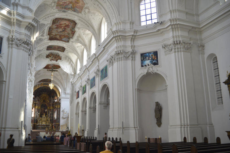 Eine Heimstatt für Domschule, Scholastiker und sogar DichterDie prächtige Barockfassade mit der grossen, nach beiden Seiten ausgeschwungenen Freitreppe verfehlt Ihren Eindruck auf die Besucher nicht. Eingebettet in die innerstädtische Häuserflucht (Kürschnerhof) befindet sich die Neumünsterkirchenur wenige Meter nördlich des Doms genau an der Stelle, an der wohl die erste Domkirche Würzburgs stand, der Salvator-Dom.Diese erste Domkirche wurde 788 von Bischof Berowelf im Beisein Karls d. Großen auf den Namen "Christus-Salvator" geweiht, was in etwa so viel bedeutet wie 'Retter' oder eben 'Erlöser'. Sie hatte zu diesem Zeitpunkt schon die von Burkard, dem ersten Bischof des jungen Bistum aufgefundenen Reliquien der Frankenapostel 'Kilian', 'Kolonat' und 'Totnan' aufgenommen, welche zunehmend auch Pilger anlockten. Man weiss nicht viel bis nichts über die Architektur dieser Kirche, jedoch heißt es, dass sie eine der größten ihrer Zeit gewesen sein soll. Es ist anzunehmen, dass die Menschen jener Zeit eher nichts von z.B. der Hagia Sofia gewusst haben werden.Halbwegs wahrscheinlich ist auch, dass der 'Salvatordom' in weiten Teilen aus Holz bestanden haben wird, denn in 855 brennt die Kirche nach einem Blitzschlag komplett nieder und auch die 'Mauern' seien bald darauf eingestürzt, wie es heisst.Bischof Arn lässt danach eine 3-schiffige Kirche errichten. Auch diese brennt im Jahr 918 wieder nieder und wird neu errichtet.Bischof Bernward lässt ein Oratorium für die Reliquien der 'Frankenapostel' kurz vor der Jahrtausendwende bauen. Wie das im Kontext zur Kirche ausgesehen haben könnte, weiß man wohl nicht so genau. Die eigentliche Geschichte des Neumünster beginnt mit dem Bau des romanischen Doms an seinem heutigen Standort. Als dieser Neubau wohl soweit fortgeschritten war, dass er für die Messe zur Verfügung stand, gründet Bischof Adalbero am alten Standort das Neumünsterstift zu Ehren Mariens und beginnt 1060 mit dem Bau einer großen, z.T. zwei-stöckigen Basilika, deren Untergeschoss in das leicht ansteigende Erdreich hineinreicht und nun die Gebeine der Heiligen aufnimmt, während das Oberschoß aus der drei-schiffigen Basilika mit Querhaus und Ostapsis besteht. Zum Kiliansplatz zwischen den beiden Kirchen hin ebenerdig. - Dies war für die damalige Zeit sicher eine ungewöhnliche und im Sinne der Kilianslegende Aufsehen erregende Lösung (Es gibt etwas ähnliches am Dom von Siena; dort ist es das Baptisterium - Taufkapelle - unter dem Chor). Auch die beiden Großbaustellen mitten im Zentrum der Stadt haben sicher ein sehr pulsierendes Bild abgegeben und standen für eine spannende, aktive Entwicklungszeit der Stadtgeschichte.Außer dem Kirchenbau und einem anliegenden Stiftsgebäude sehen wir heute von dem früheren Areal des Stifts nur noch das Lusamgärtchen (siehe bitte auch dort) auf wenigen Quadratmetern im Nordosten der Kirche. Ursprünglich gab es dort z.B. auch einen Kreuzgang aus dem 12. Jahrhundert, von dem die zunächst verbauten und dann ab 1883 im Luitpold-Museum (Vorgänger Mainfränkisches Museum) ausgestellten Reste ab 1930 wieder in der Nähe des ursprünglichen Standorts aufgebaut wurden. Die leider stark verwitterten Stelen zeigen z.B. Reliefe des Kilian und des Christus als Weltenherrscher. Es handelt sich dabei um die vielleicht ältesten figürlichen Darstellungen Würzburgs. Insbesondere interessant finde ich jedoch die Säulen mit den Würfelkapitellen, welche neben zu erwartenden Palmetten z.T. auch an Runen und an sehr viel ältere Zeiten erinnernde Motive zeigen. - Vielleicht ein Ausdruck der Disputation, der Scholastiker und Domschule dort, für die Würzburg im Mittelalter durchaus bekannt war.Weit über die Grenzen Würzburgs hinaus, ist das Neumünster-Stift auch hierfür berühmt: "ich hân mîn lêhen, al die werlt, ich hân mîn lêhen" - Der schon zu Lebzeiten sehr bekannte und kontrovers verehrte Dichter Walter von der Vogelweide erhält von Friedrich II. (einem Enkel Barbarossas) um 1220 ein Alterslehen des Neumünsterstifts, wo er demnach seine letzten Lebensjahre verbracht haben soll. Belegt ist gerade letzteres nicht. Es zeigt uns aber, auf welche Weise sich ein solches Stift grundsolide über verschiedene Güter getragen hat.Anfang des 18. Jahrhunderts wird der westliche Teil der zu diesem Zeitpunkt schon alten Kirche abgerissen und erhält durch Josef Greising die üppige, in zwei horizontale und drei vertikale Abschnitte gegliederte und etwas eingeschwungene Barockfassade mit den tollen, dazu passenden Flügeln der Freitreppe zu beiden Seiten des Oratoriums für die 'Frankenapostel'. Auch die grosse Kuppel und die komplette Barockisierung des Innenraums entstehen in dieser Zeit. - Die romanische Kirche jedoch lässt sich im Osten (Kiliansplatz zwischen Dom und Neumünster) von außen noch immer betrachten, wo sie durch die Zeiten hindurch nicht angetastet wurde.Für die Besichtigung interessant ist, dass das Kilians-Oratorium sowohl von der Strasse aus, als auch durch zwei Zugänge vom Innenraum her betreten werden kann. Das Stift wurde mit der Säkularisierung 1806 aufgelöst. Seit 1908 jedoch fungiert die Neumünsterkirche neben dem Dom als zweite Pfarrkirche für die Altstadt. Und in den Jahren zwischen 1950 - 1967 bis zur Wiedereröffnung des Doms sogar als Hauptkirche der Stadt, da sie - obwohl natürlich ebenfalls furchtbar beschädigt - nach dem Krieg wenigstens nicht in sich zusammengebrochen war und relativ schnell wieder diensttauglich hergestellt werden konnte. Die letzten Restaurierungen und Neugestaltungen fanden zwischen 1983 - 85 bzw. 2007 - 09 statt. Letztere im Zusammenhang der Gestaltungsmaßnahmen in Sachen Kiliansplatz, Augustinerkirche, Dommuseum, Stift Haug und natürlich vor allem bzgl. des Innenraums im Dom selbst. - Manches davon ist einzigartig, manches unsäglich. Entscheiden Sie bitte selbst nach ihren persönlichen Eindrücken.Das ‘Neumünster’ im Video des AltstadtrundgangesDie Statione