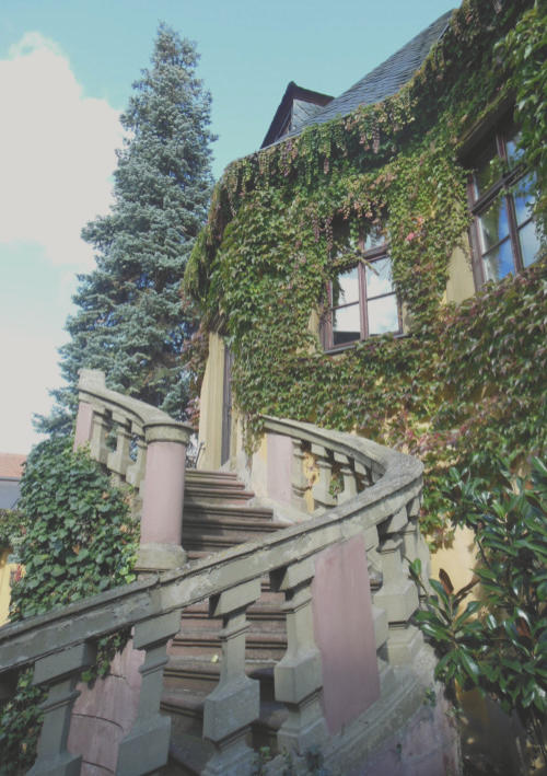 mit der beidseitig ausgeschwungenen Freitreppe ist ein Frühwerk von Balthasar Neumann und befindet sich heute inmitten des
