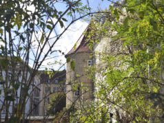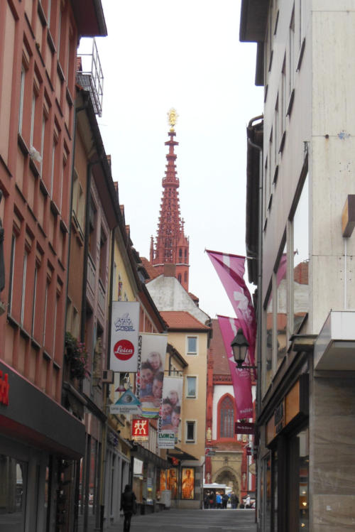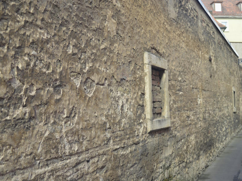 Blick an der verwinkelten Gassenführung auf engstem Raum, an Baudetails wie den vielen Hausfiguren, an vereinzelten historischen