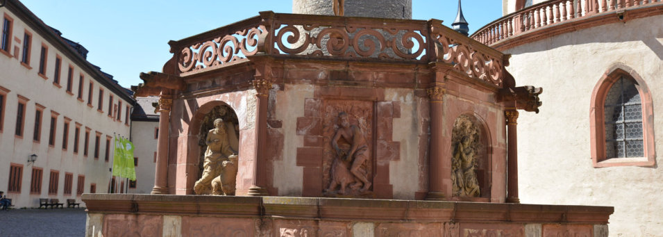 Fürstbischof Julius Echter war es auch, der über dem Schacht ein Brunnenhaus im Stil der damaligen Renaissance errichten